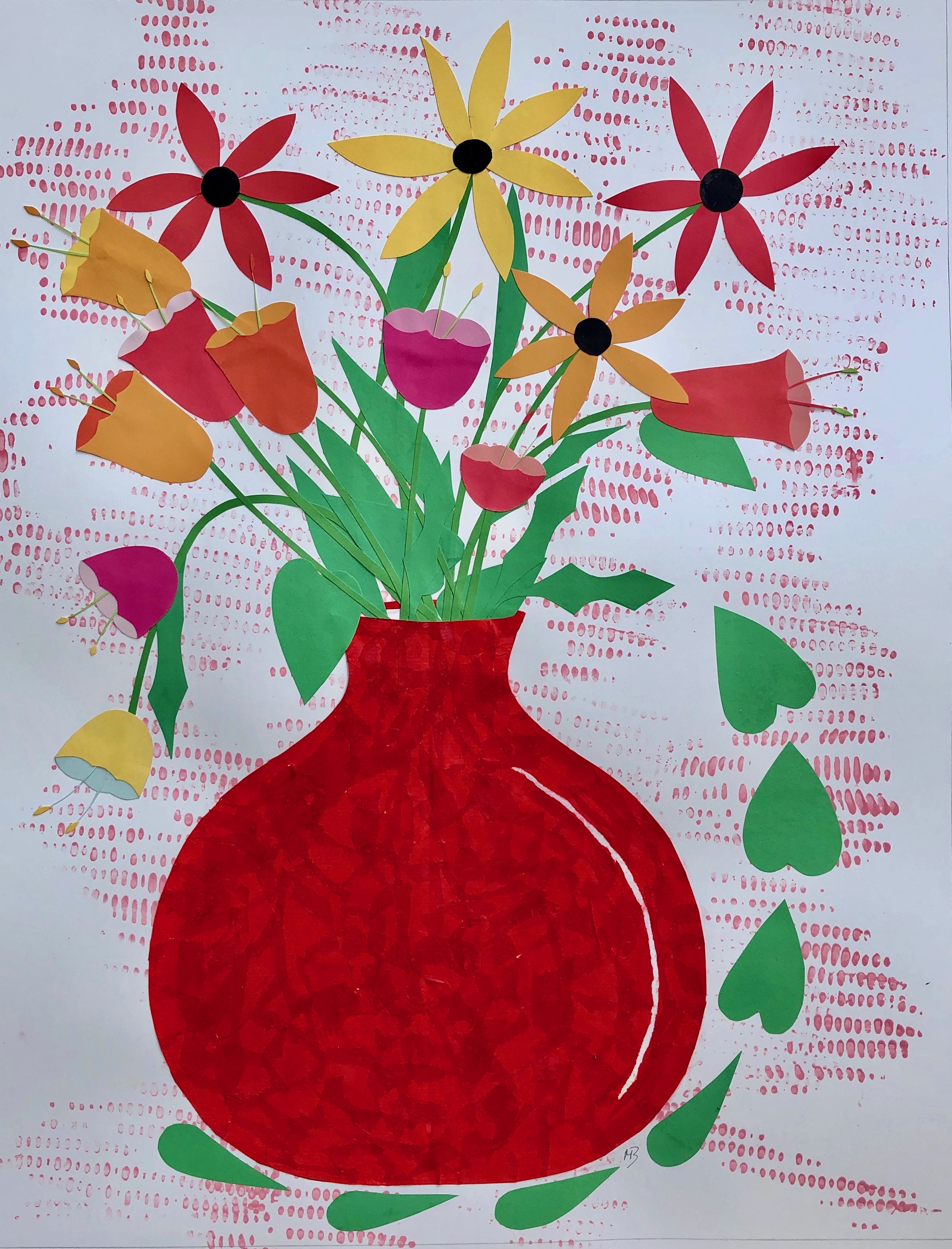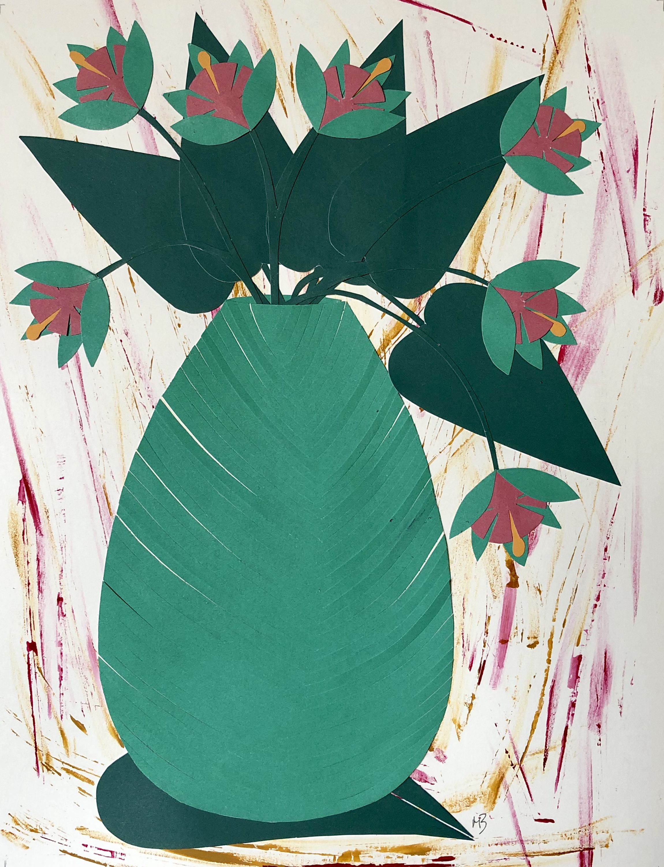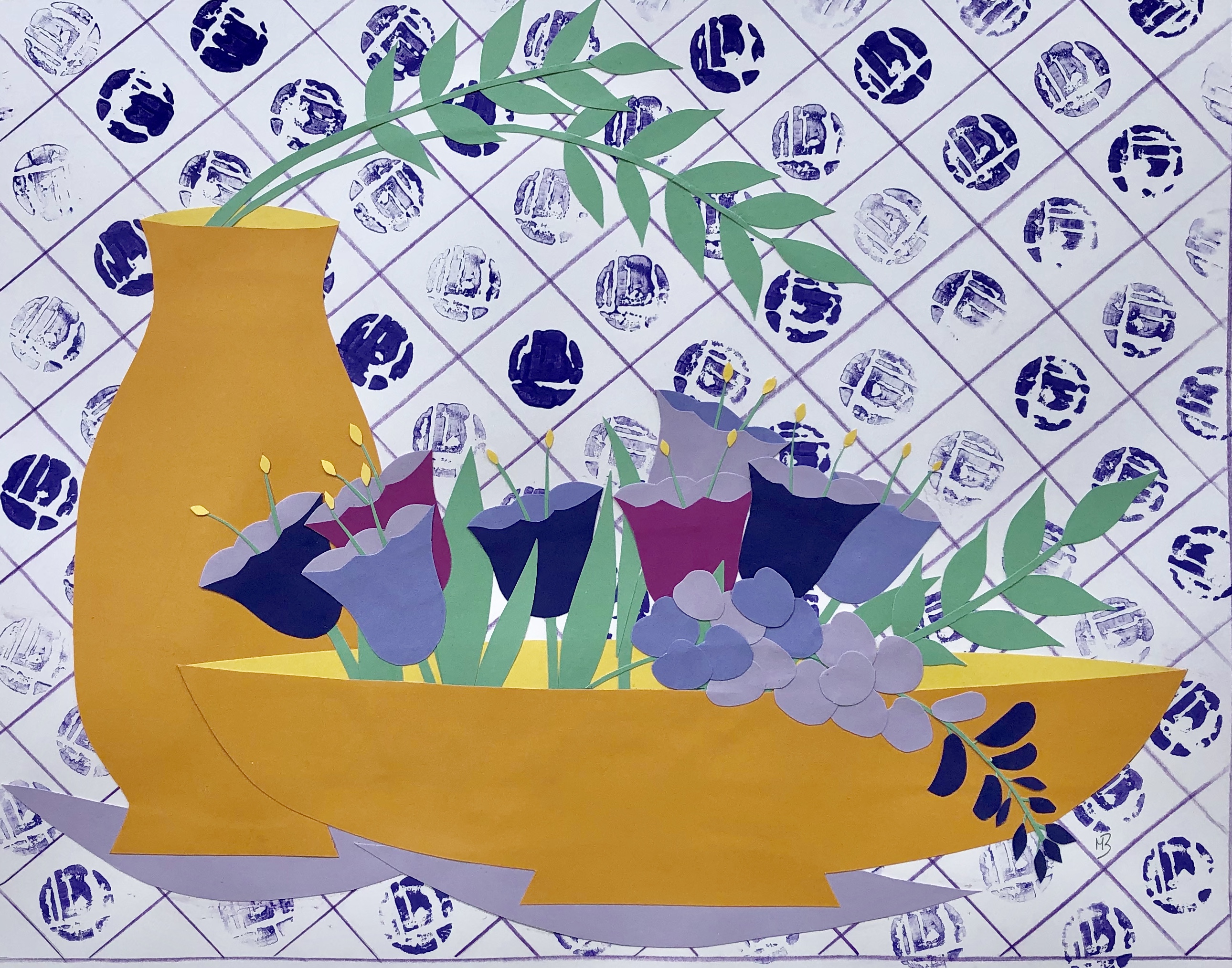 Inspired by my love of nature, the collages I have created transcend a mix of the real and the imaginary to make colorful pictures. I paint and hand print my backgrounds with gouache and watercolors, and use torn and cut pieces of color paper to craft  vases, flowers, birds and other elements of nature.  The process involved in creating my collages has given me new purpose and has become my passion. This is my collection of collages.