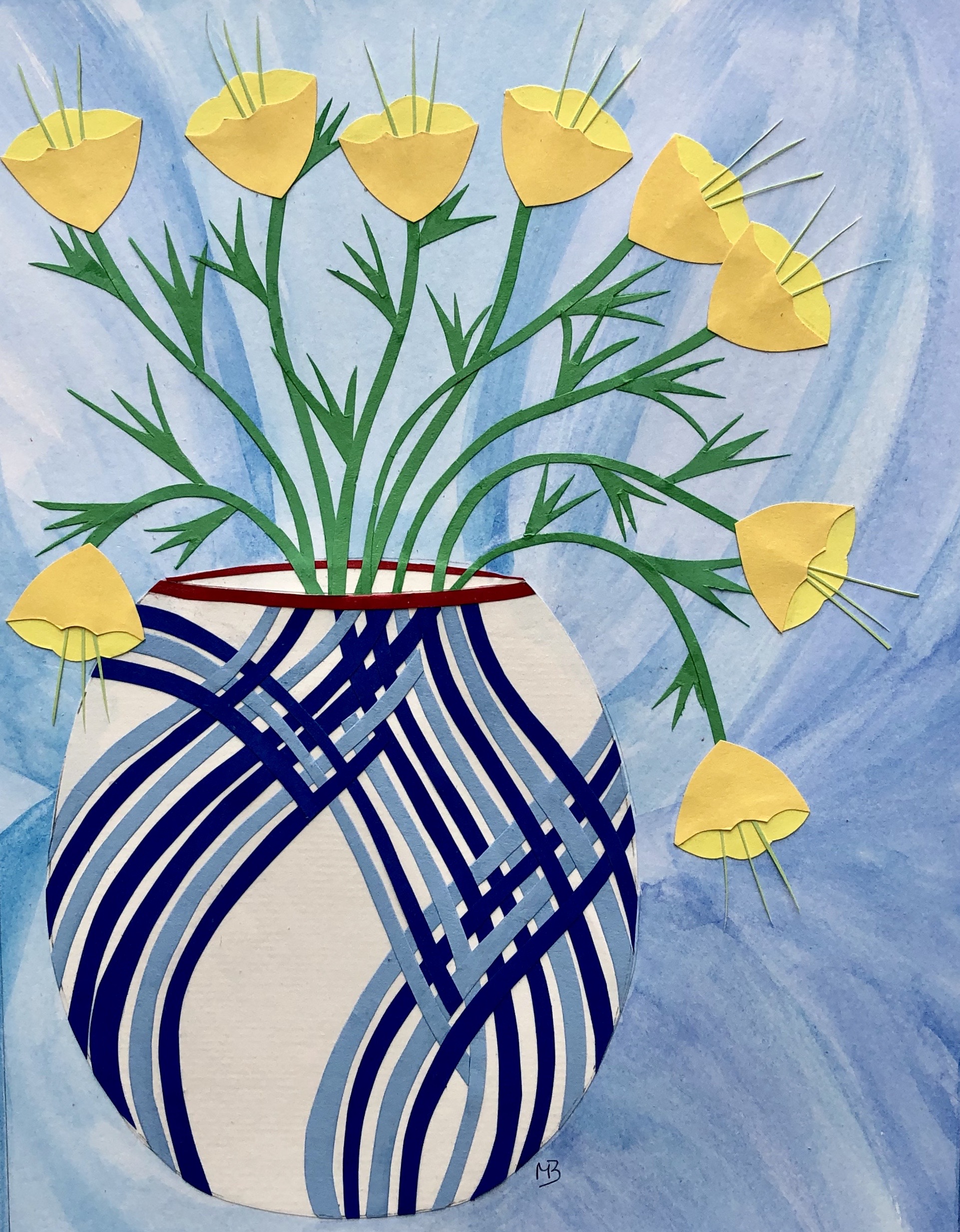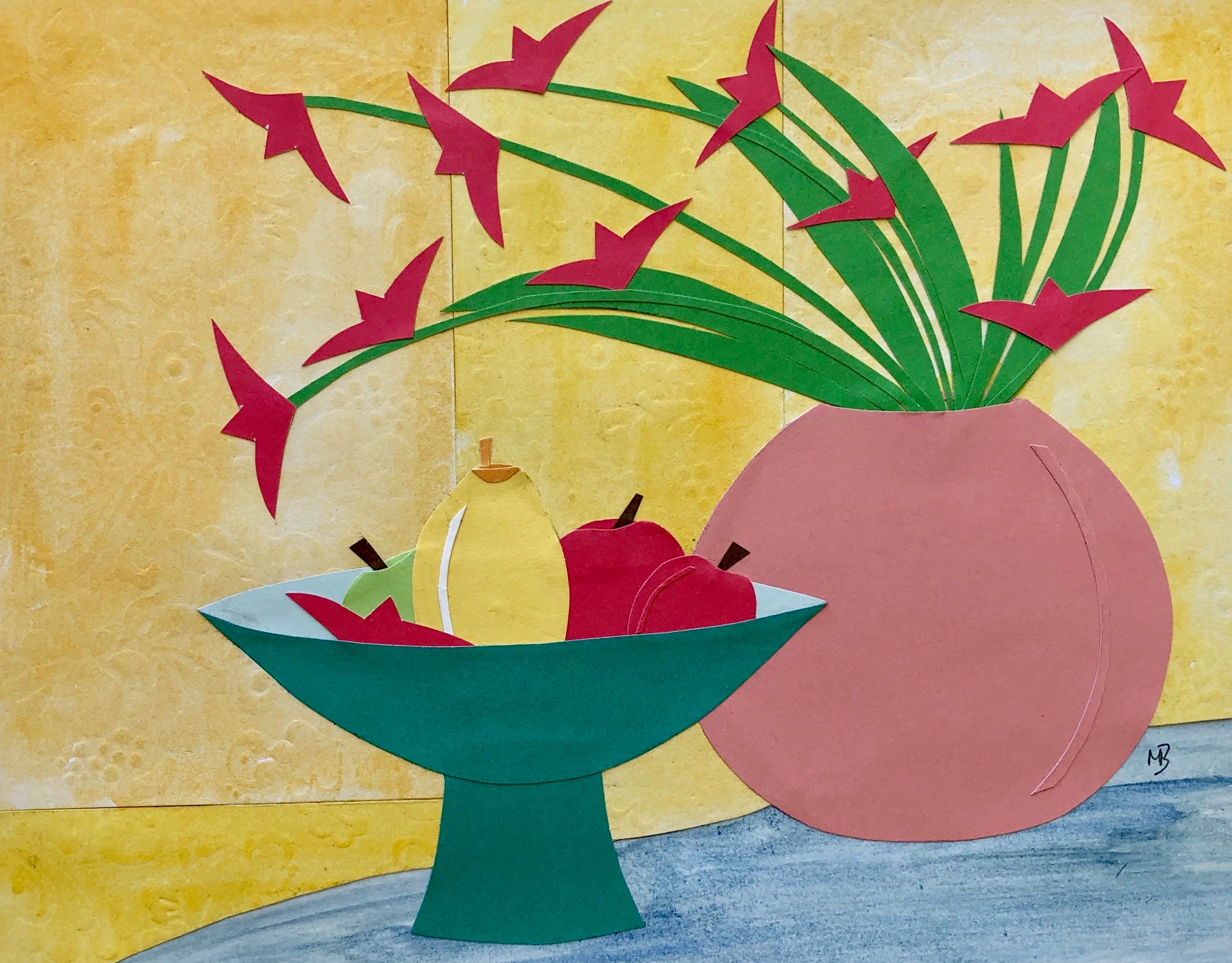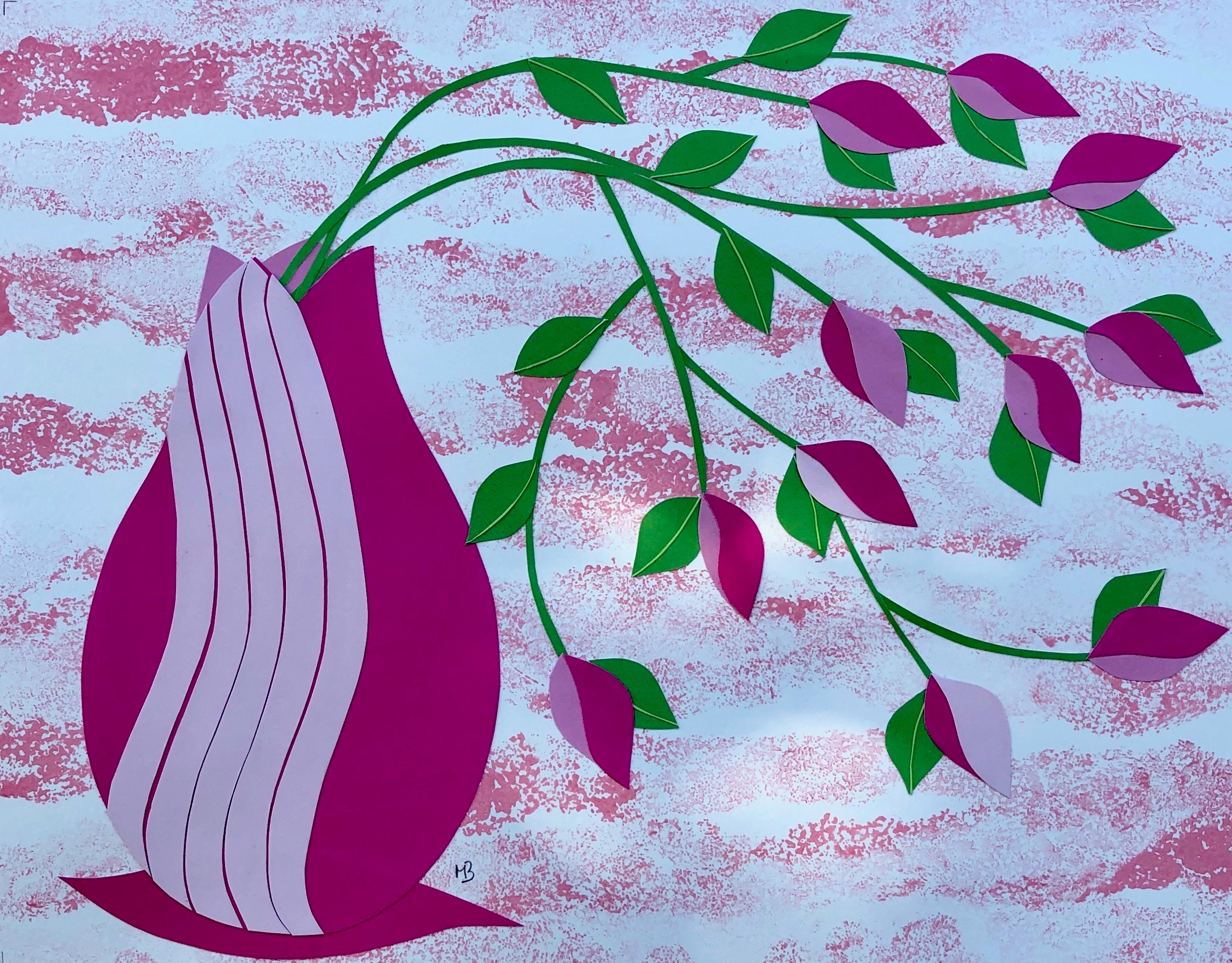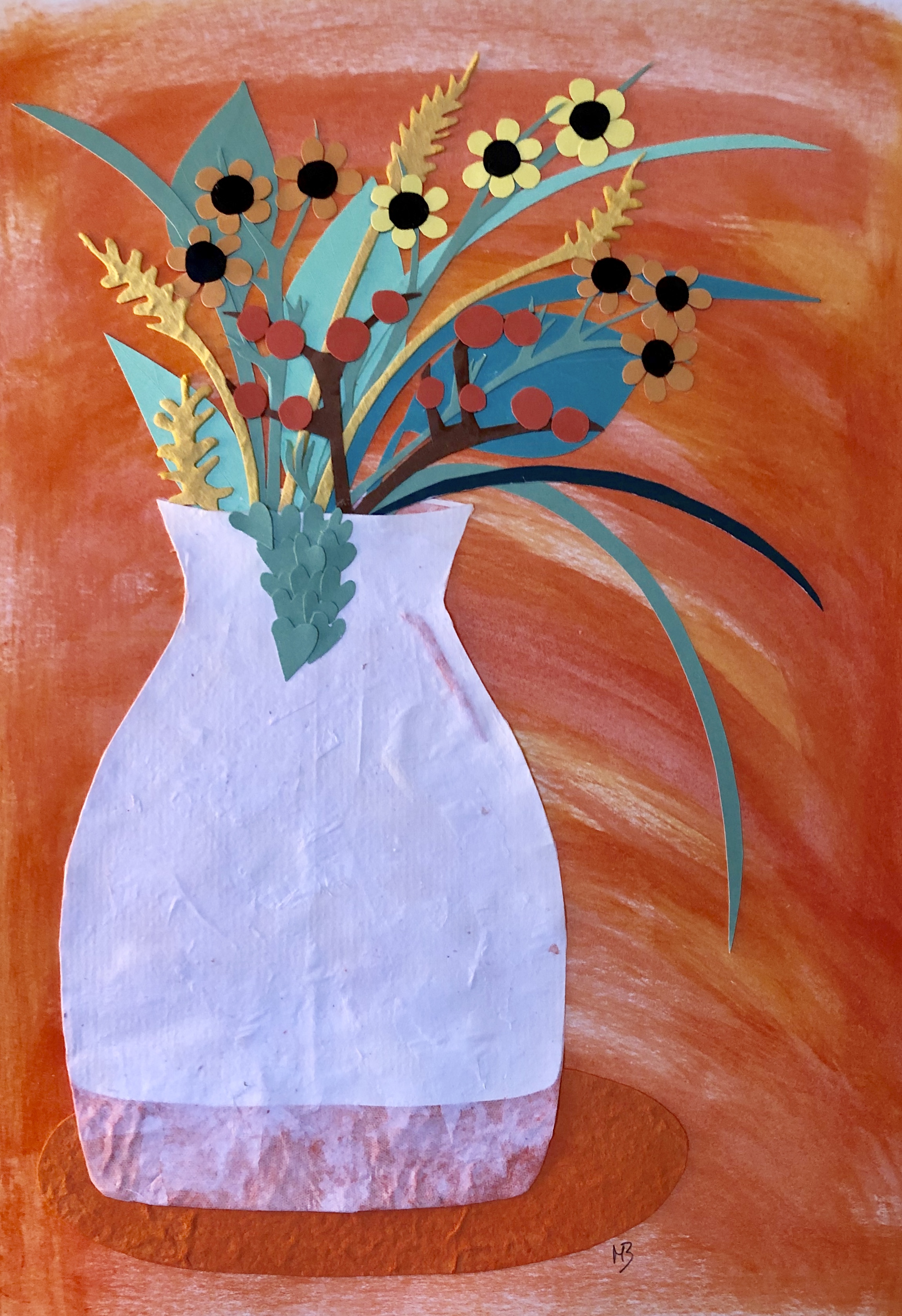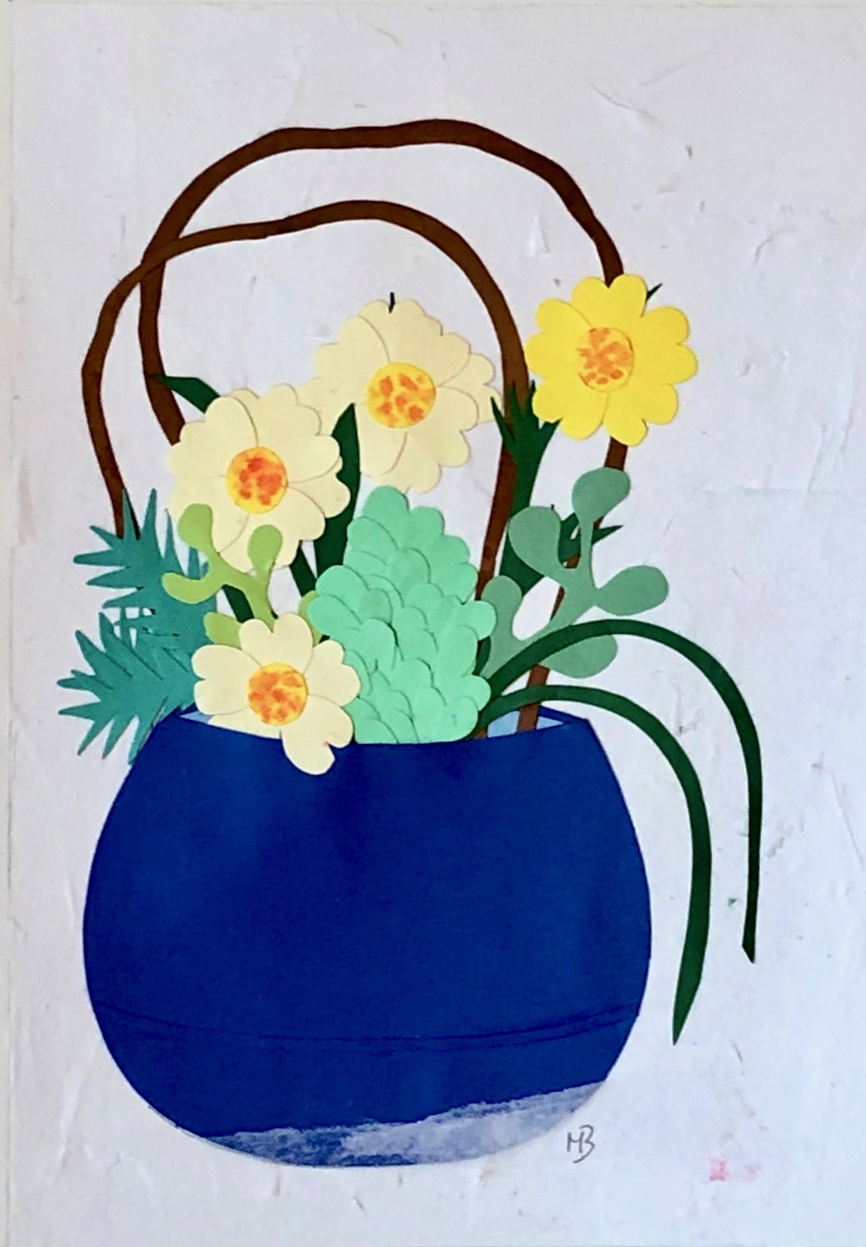 Inspired by my love of nature, the collages I have created transcend a mix of the real and the imaginary to make colorful pictures. I paint and hand print my backgrounds with gouache and watercolors, and use torn and cut pieces of color paper to craft vases, flowers, birds and other elements of nature. The process involved in creating my collages has given me new purpose and has become my passion. This is my collection of collages.