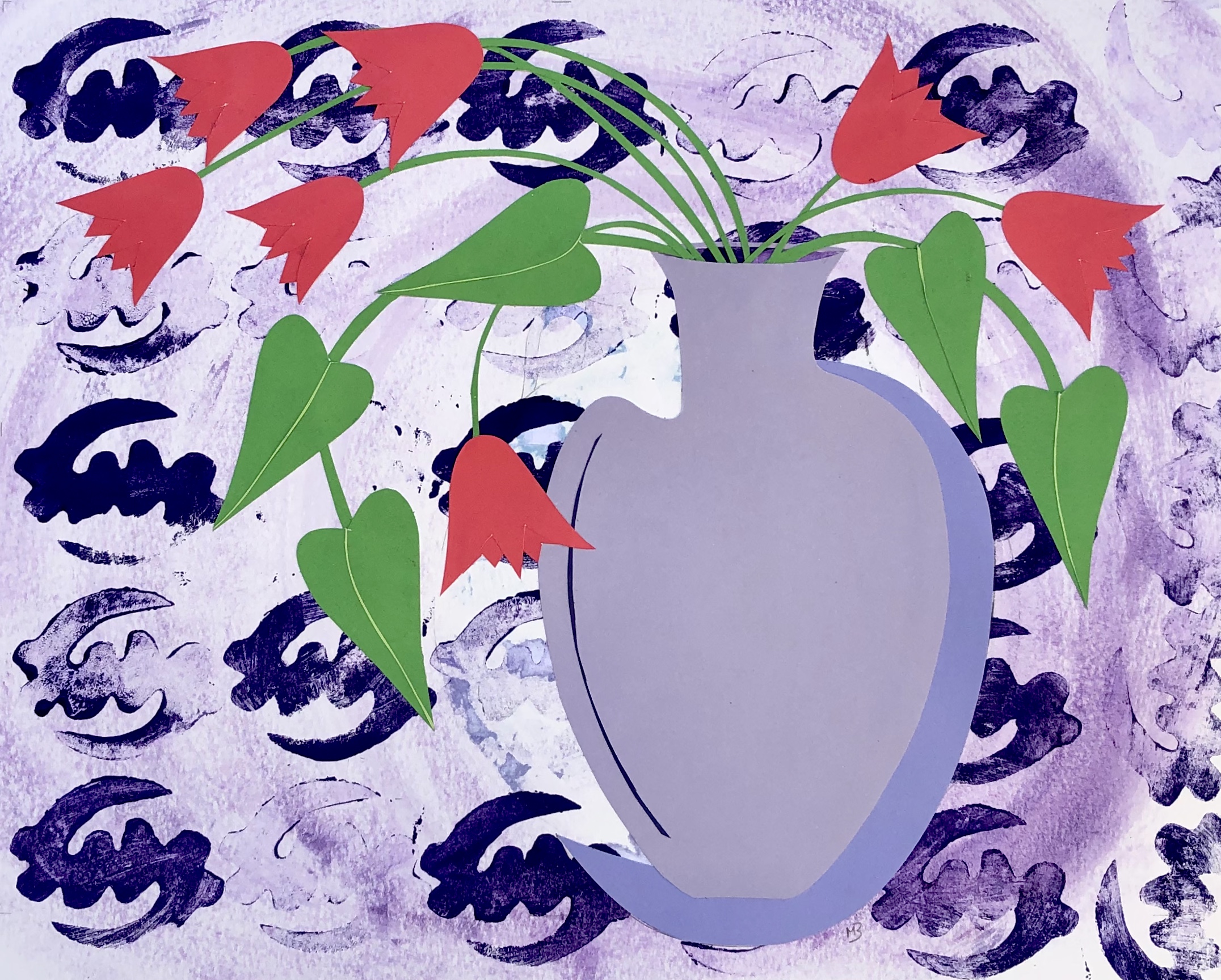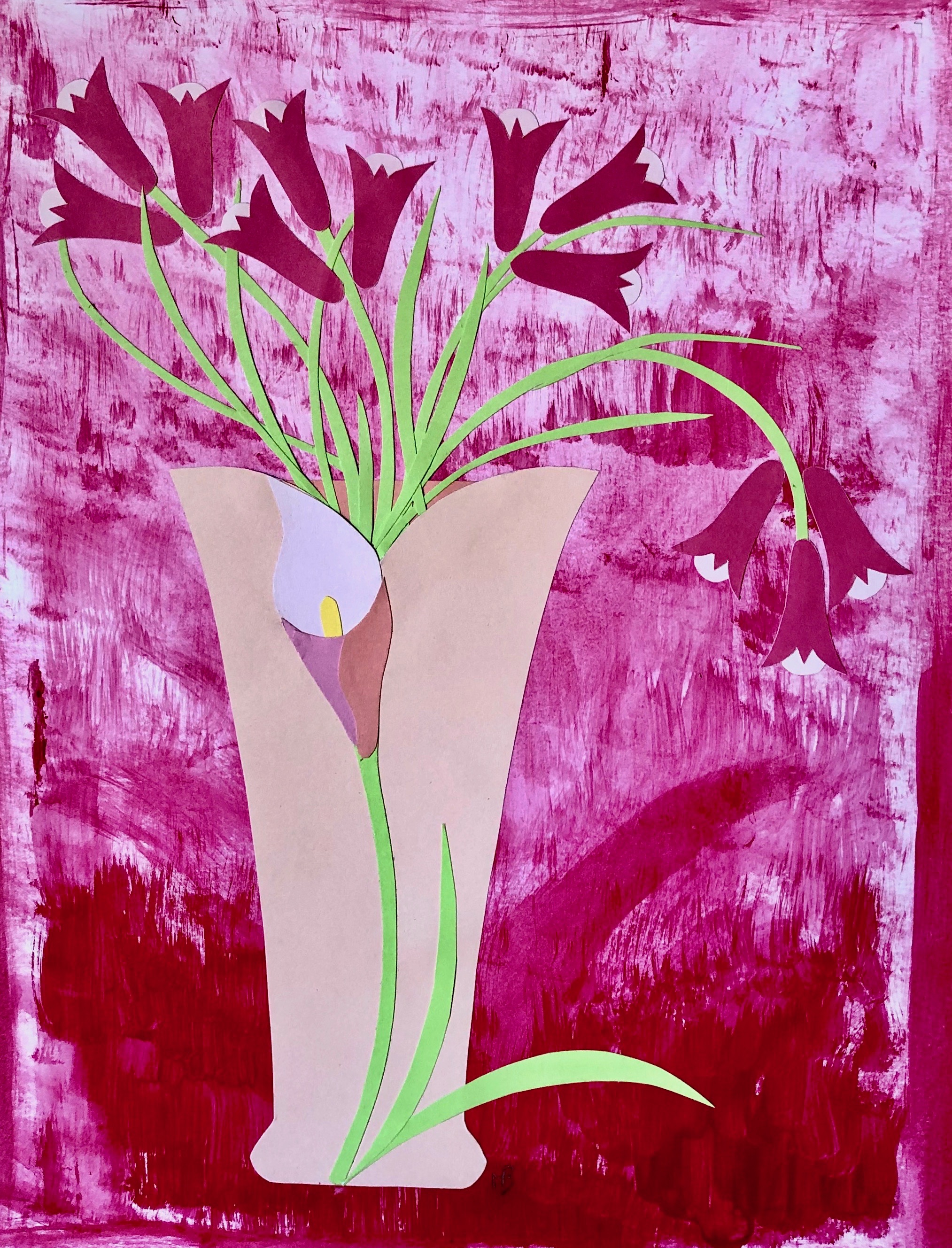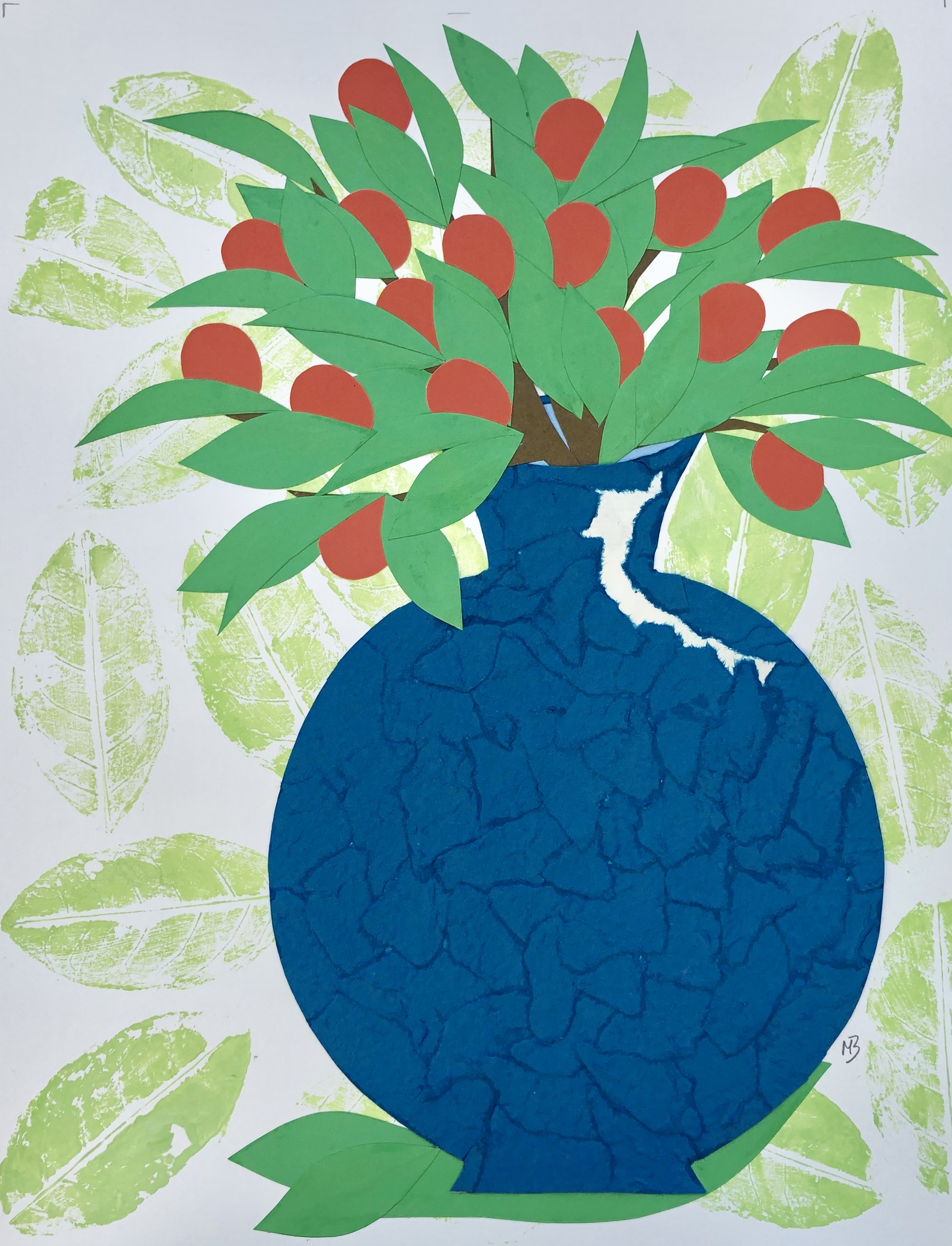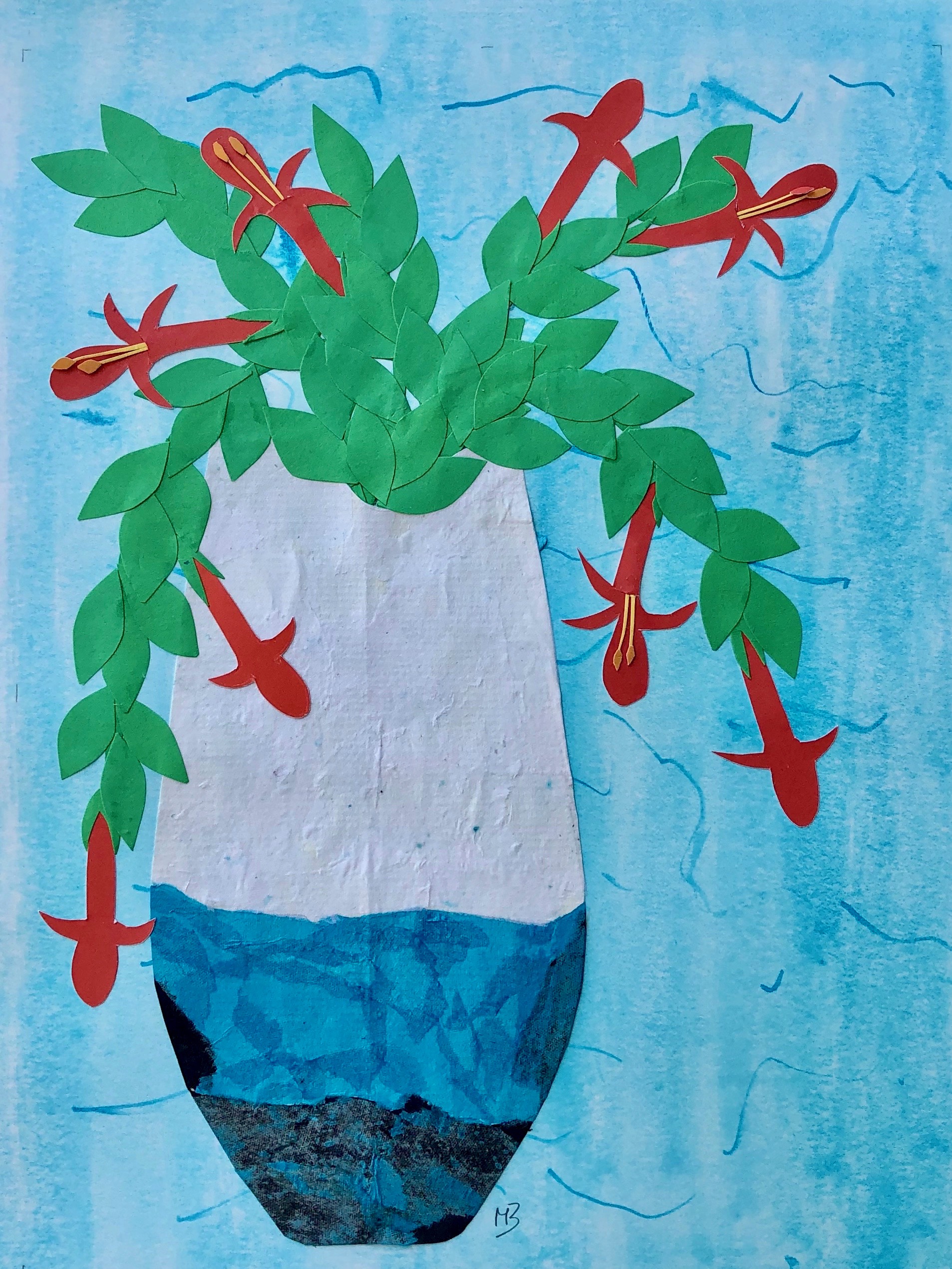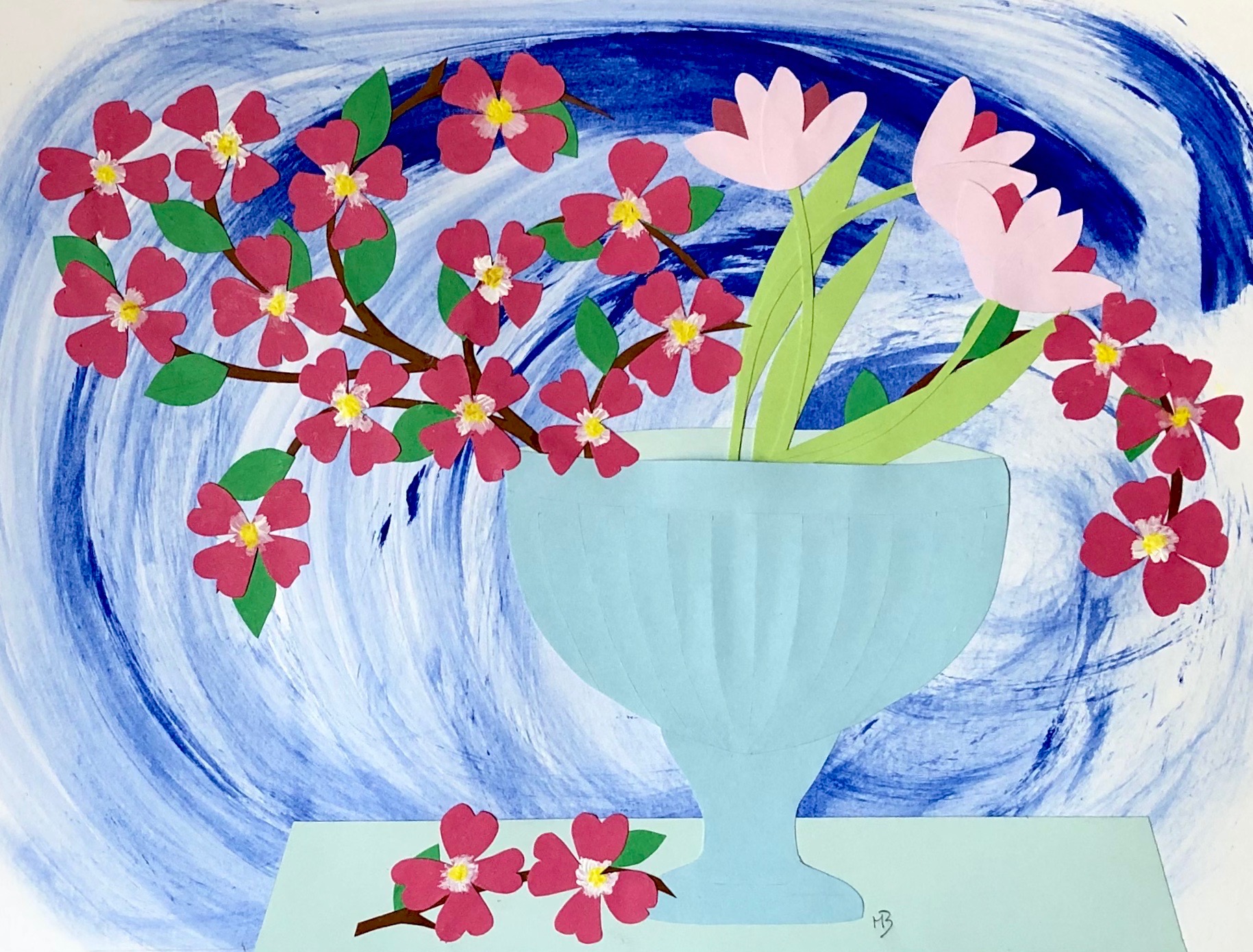 Inspired by my love of nature, the collages I have created transcend a mix of the real and the imaginary to make colorful pictures. I paint and hand print my backgrounds with gouache and watercolors, and use torn and cut pieces of color paper to craft vases, flowers, birds and other elements of nature. The process involved in creating my collages has given me new purpose and has become my passion. This is my collection of collages.