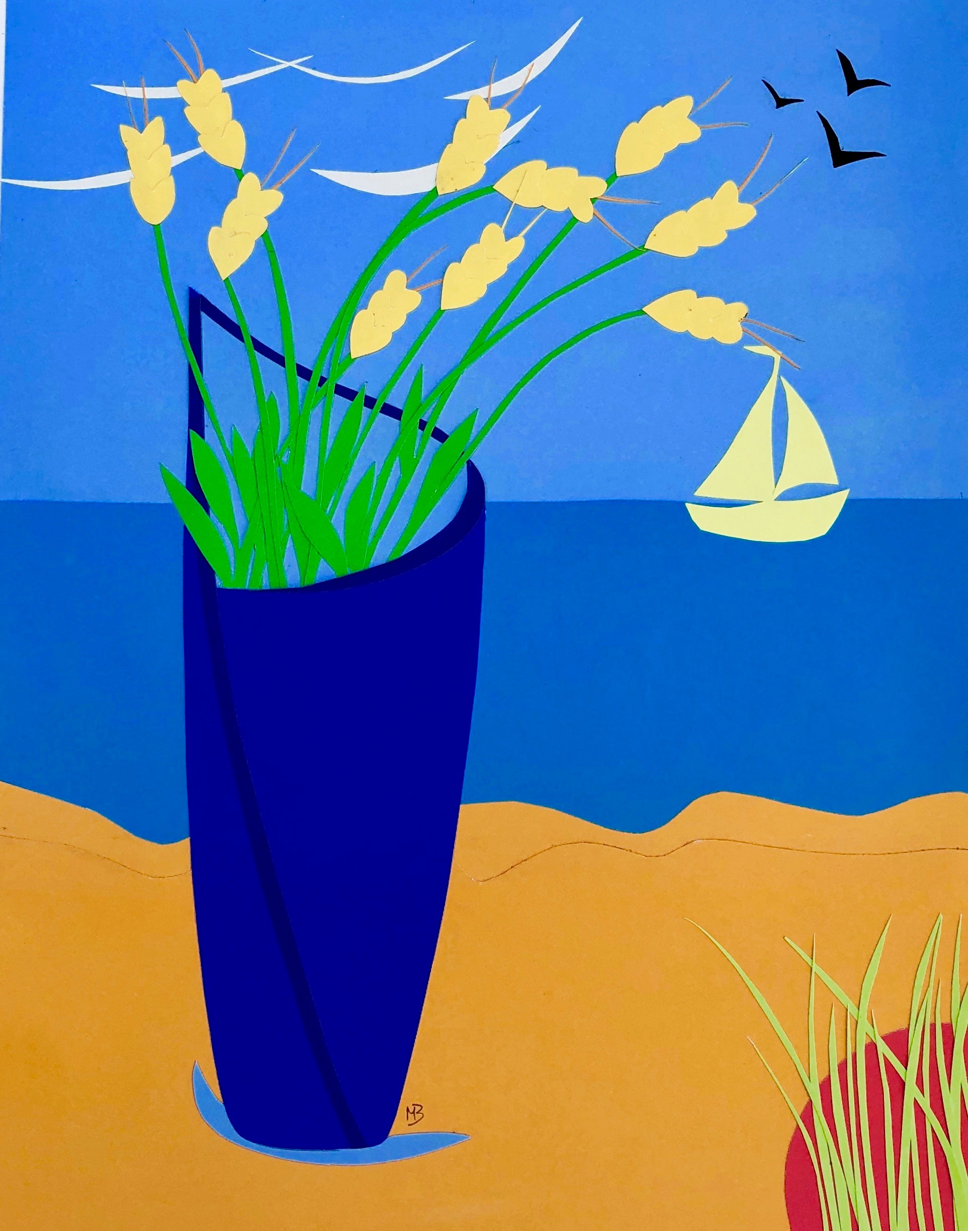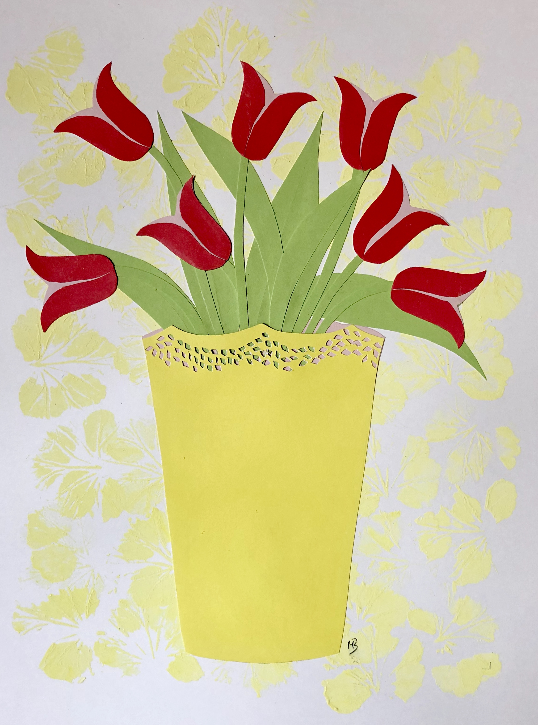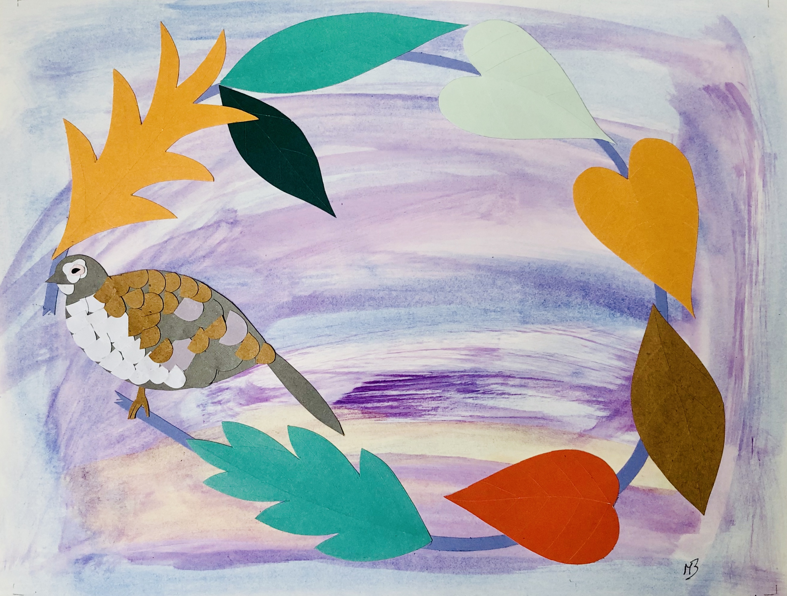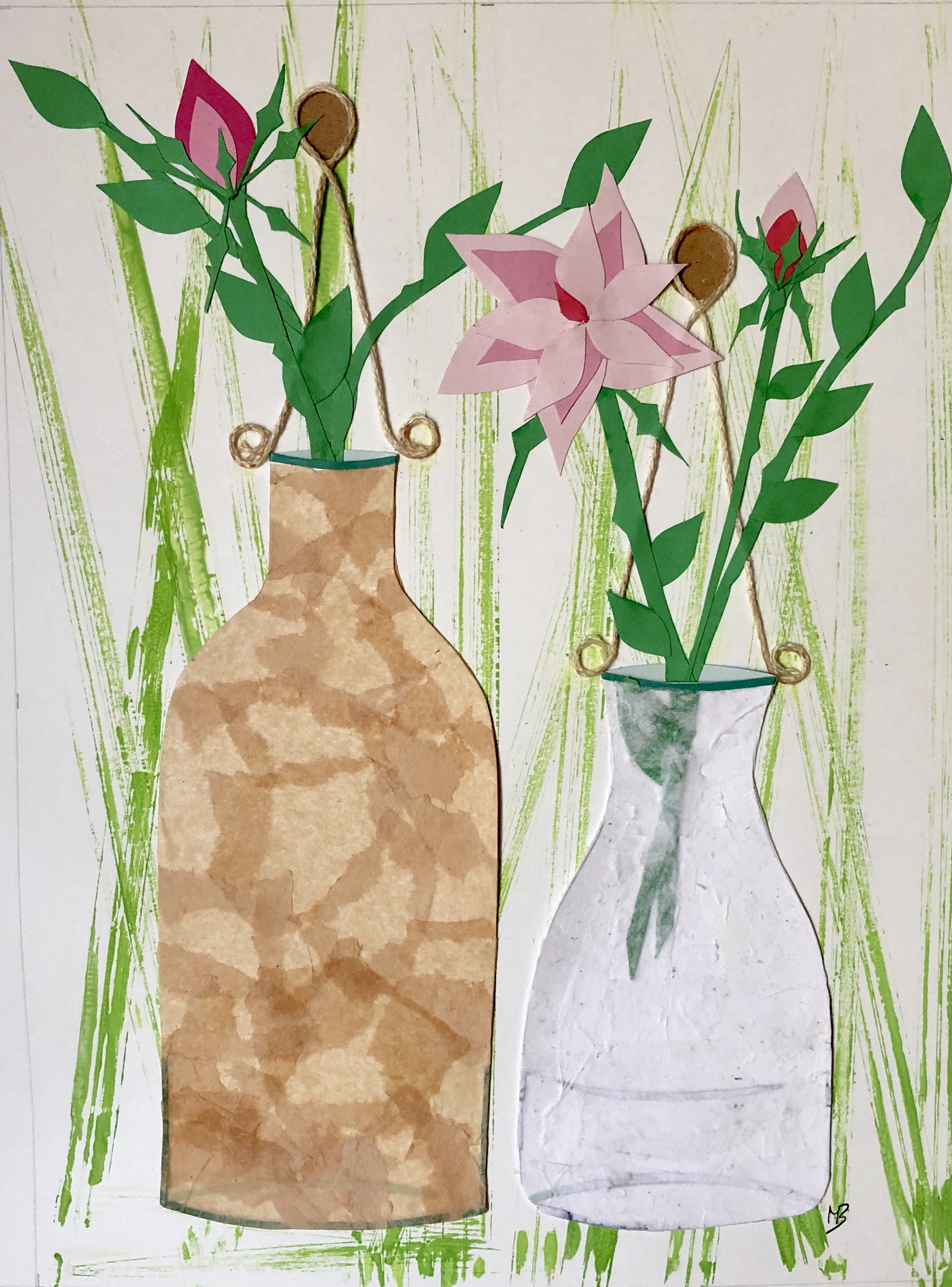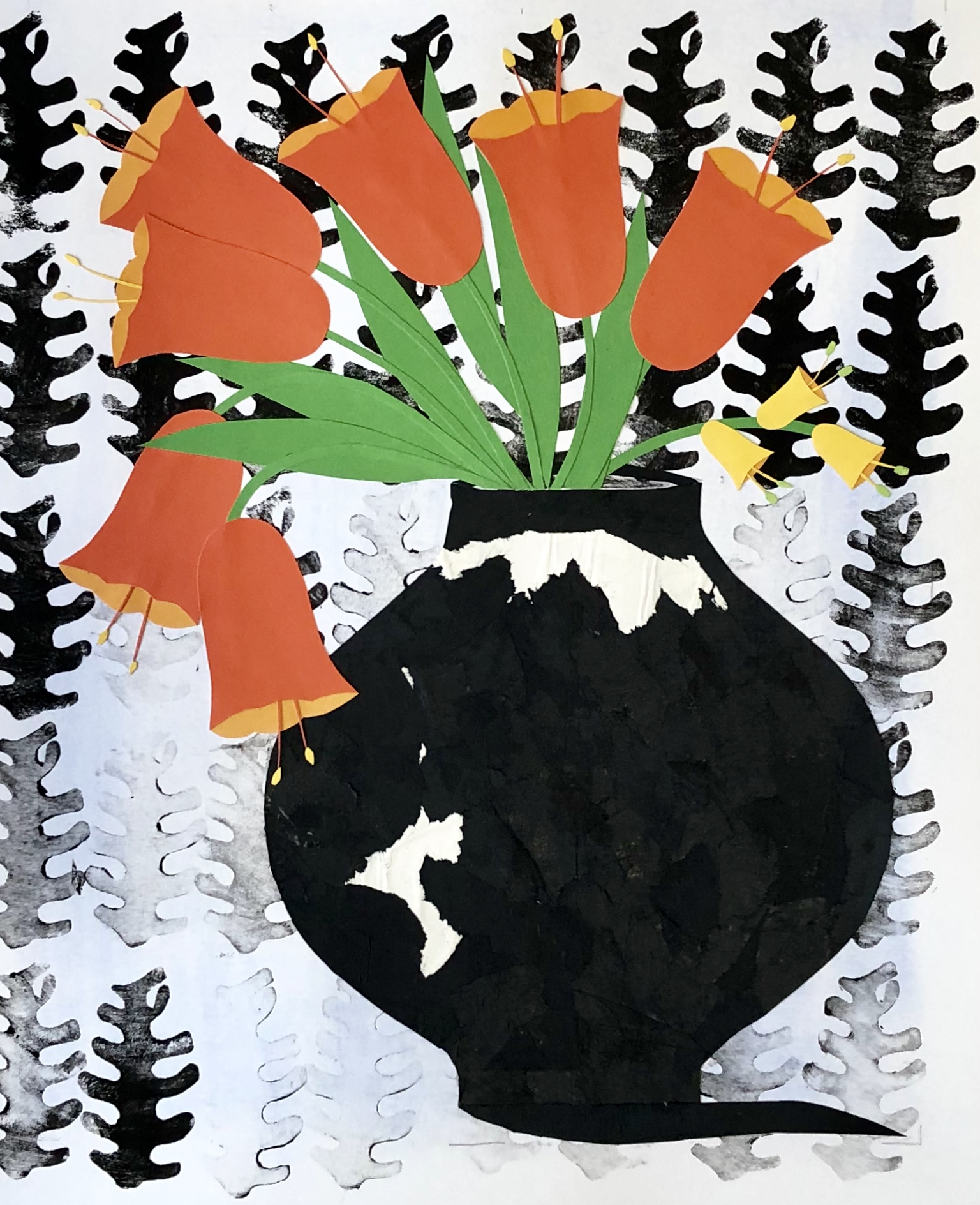 Inspired by my love of nature, the collages I have created transcend a mix of the real and the imaginary to make colorful pictures. I paint and hand print my backgrounds with gouache and watercolors, and use torn and cut pieces of color paper to craft vases, flowers, birds and other elements of nature. The process involved in creating my collages has given me new purpose and has become my passion. This is my collection of collages.