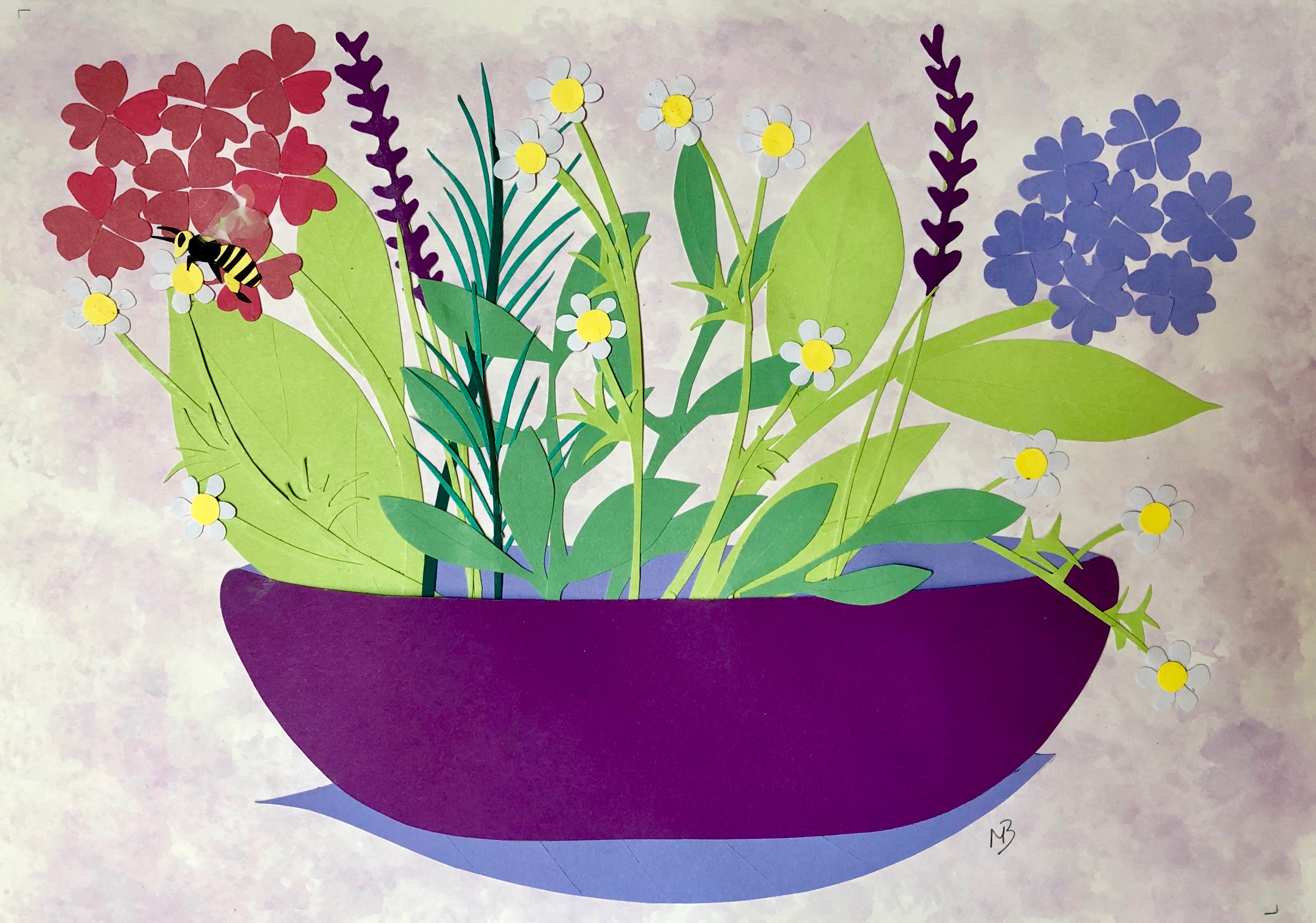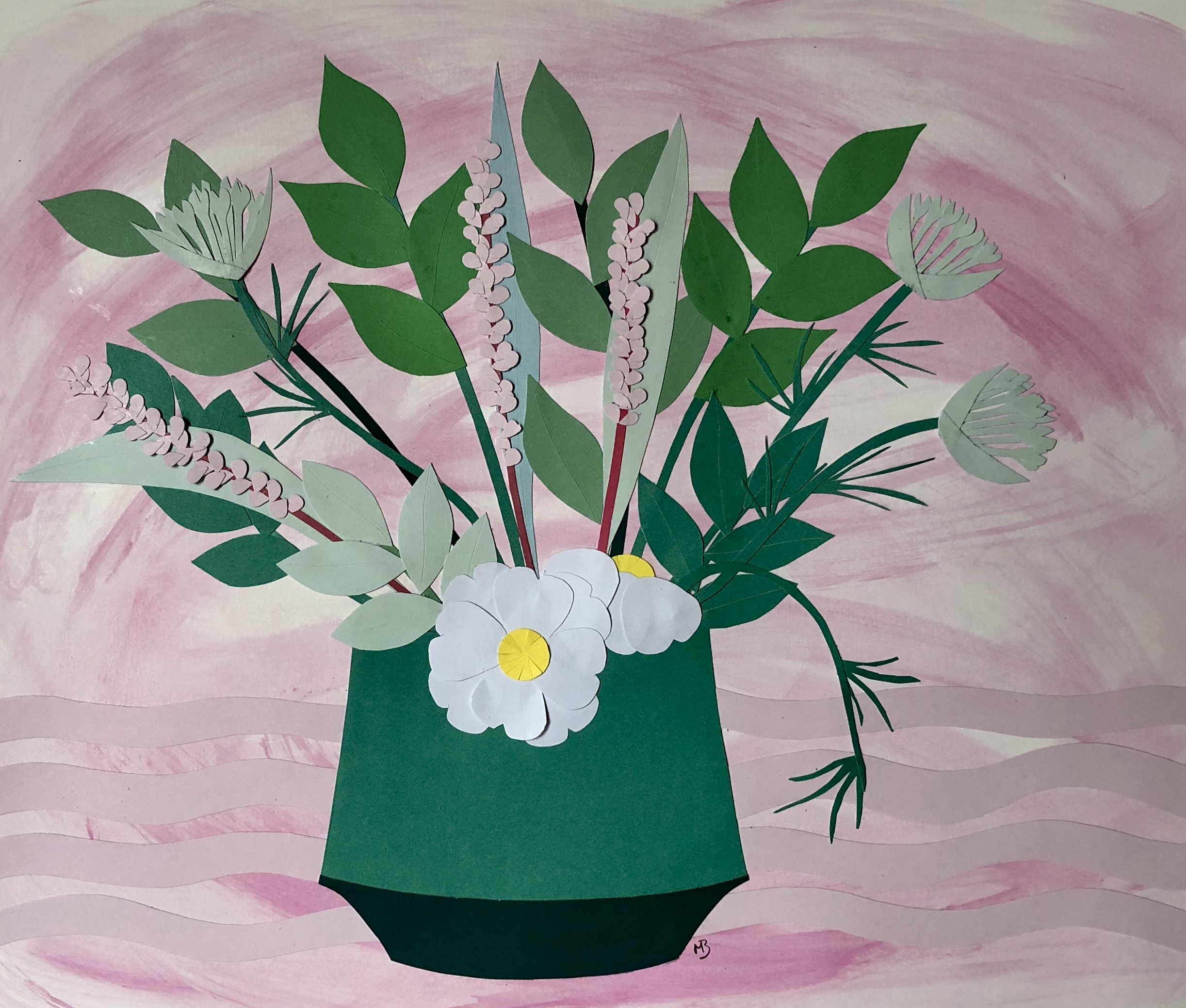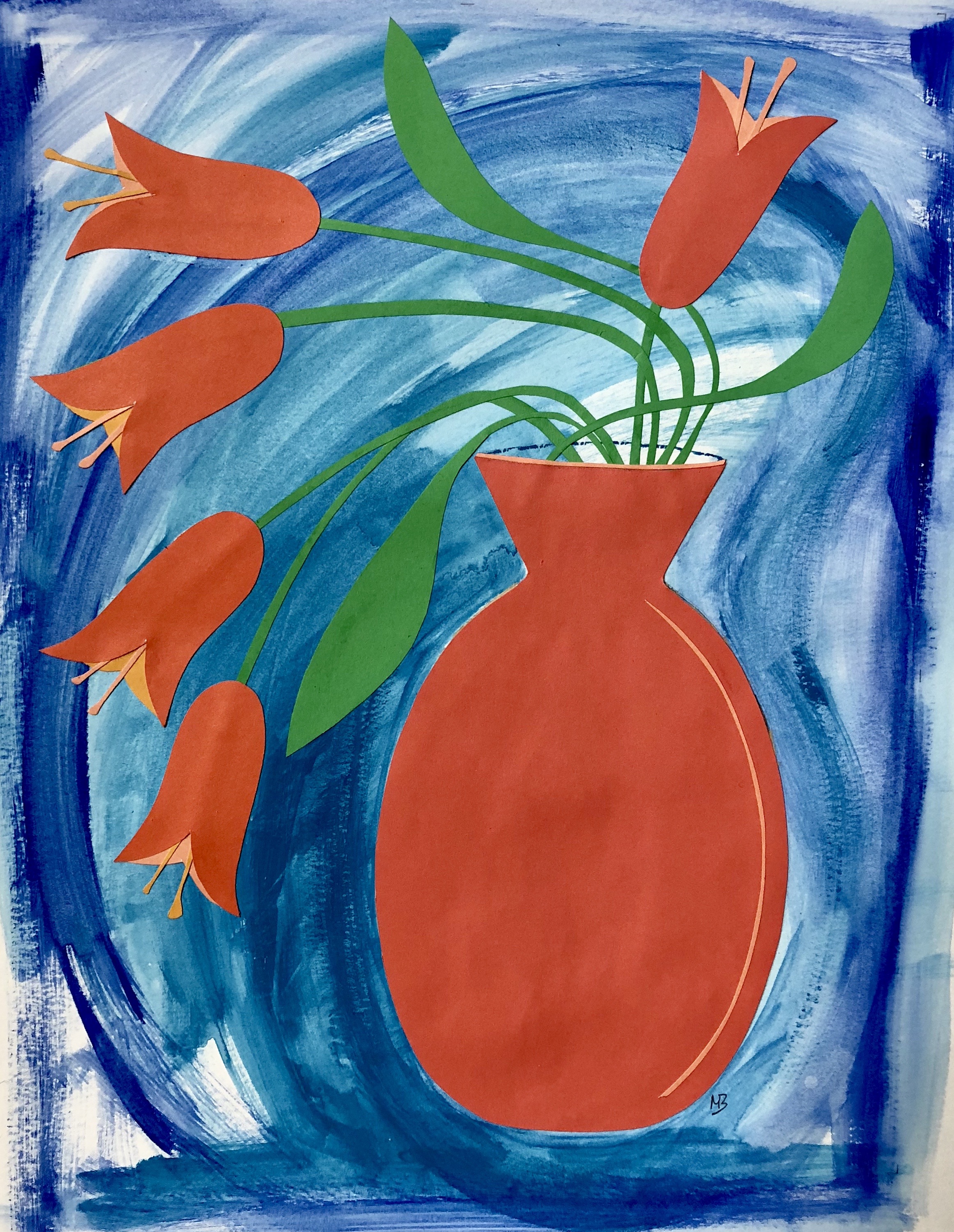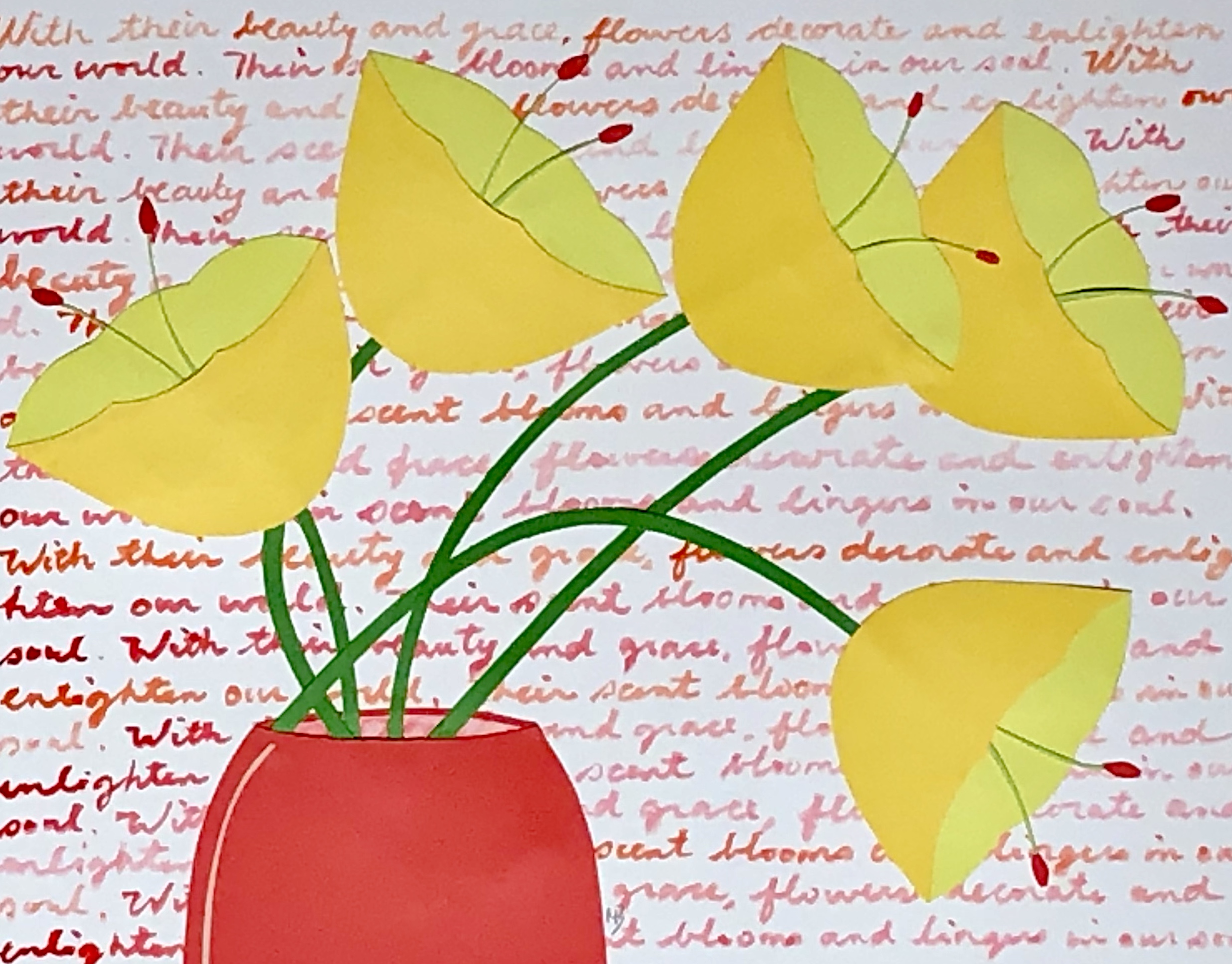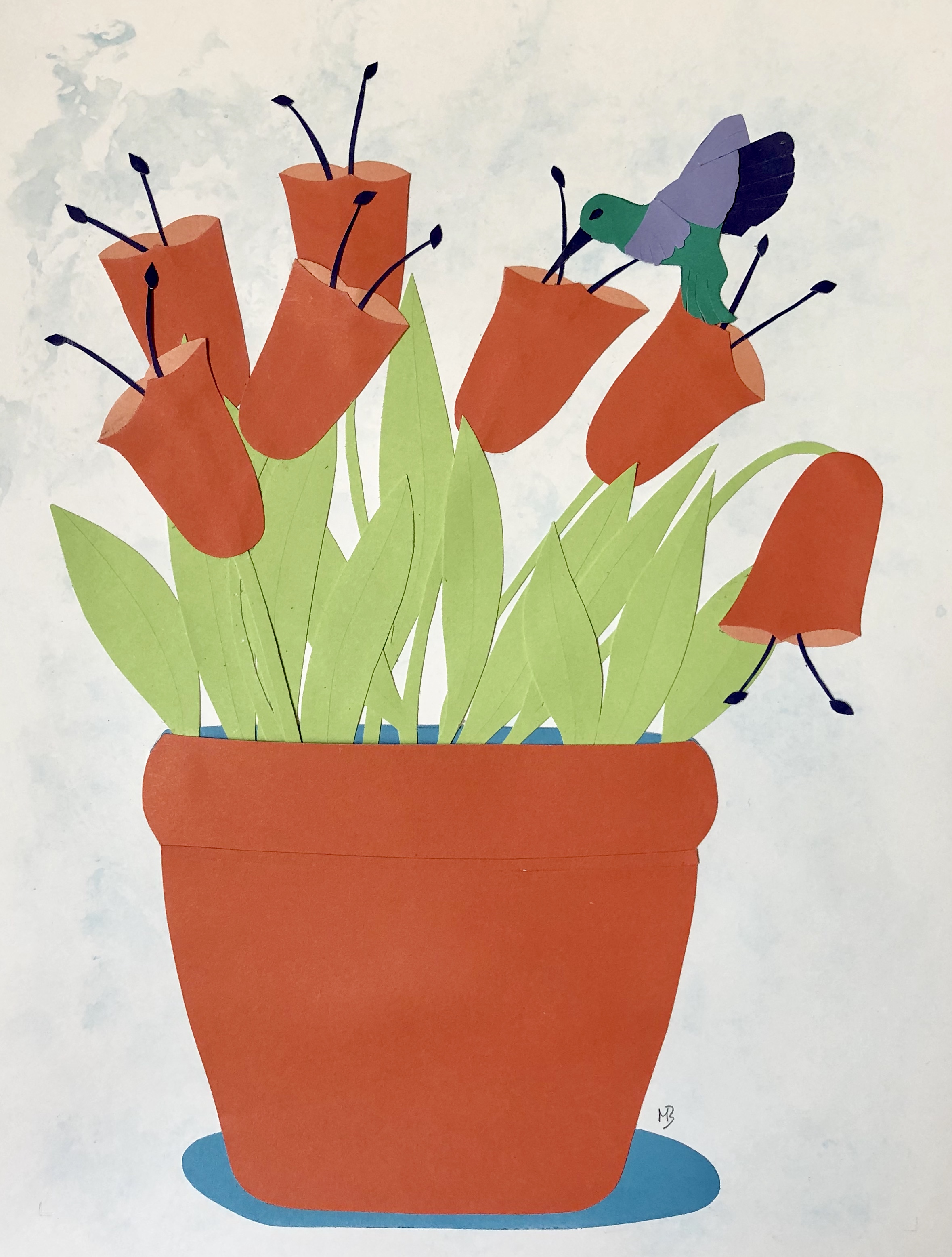 Inspired by my love of nature, the collages I have created transcend a mix of the real and the imaginary to make colorful pictures. I paint and hand print my backgrounds with gouache and watercolors, and use torn and cut pieces of color paper to craft vases, flowers, birds and other elements of nature. The process involved in creating my collages has given me new purpose and has become my passion. This is my collection of collages.