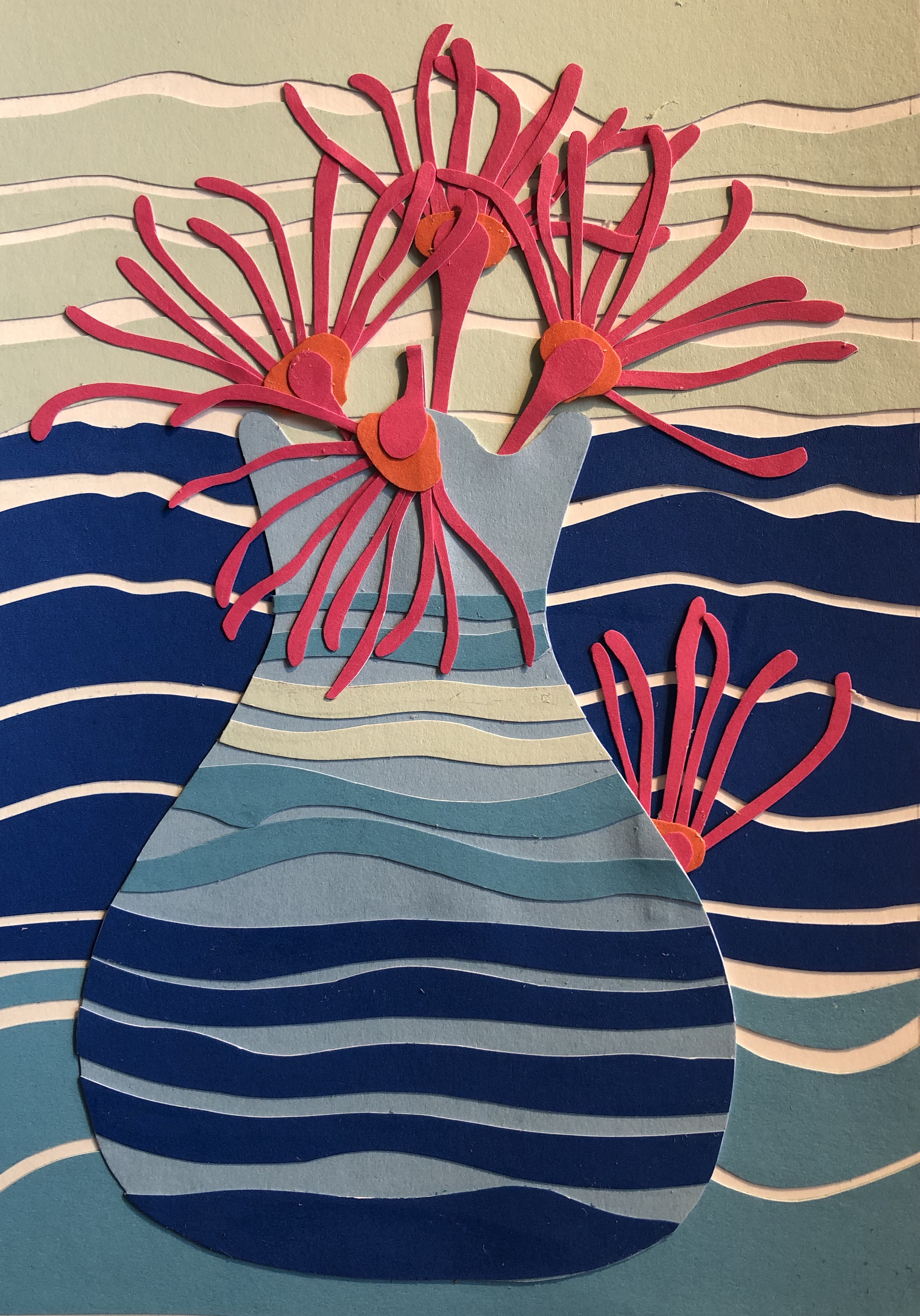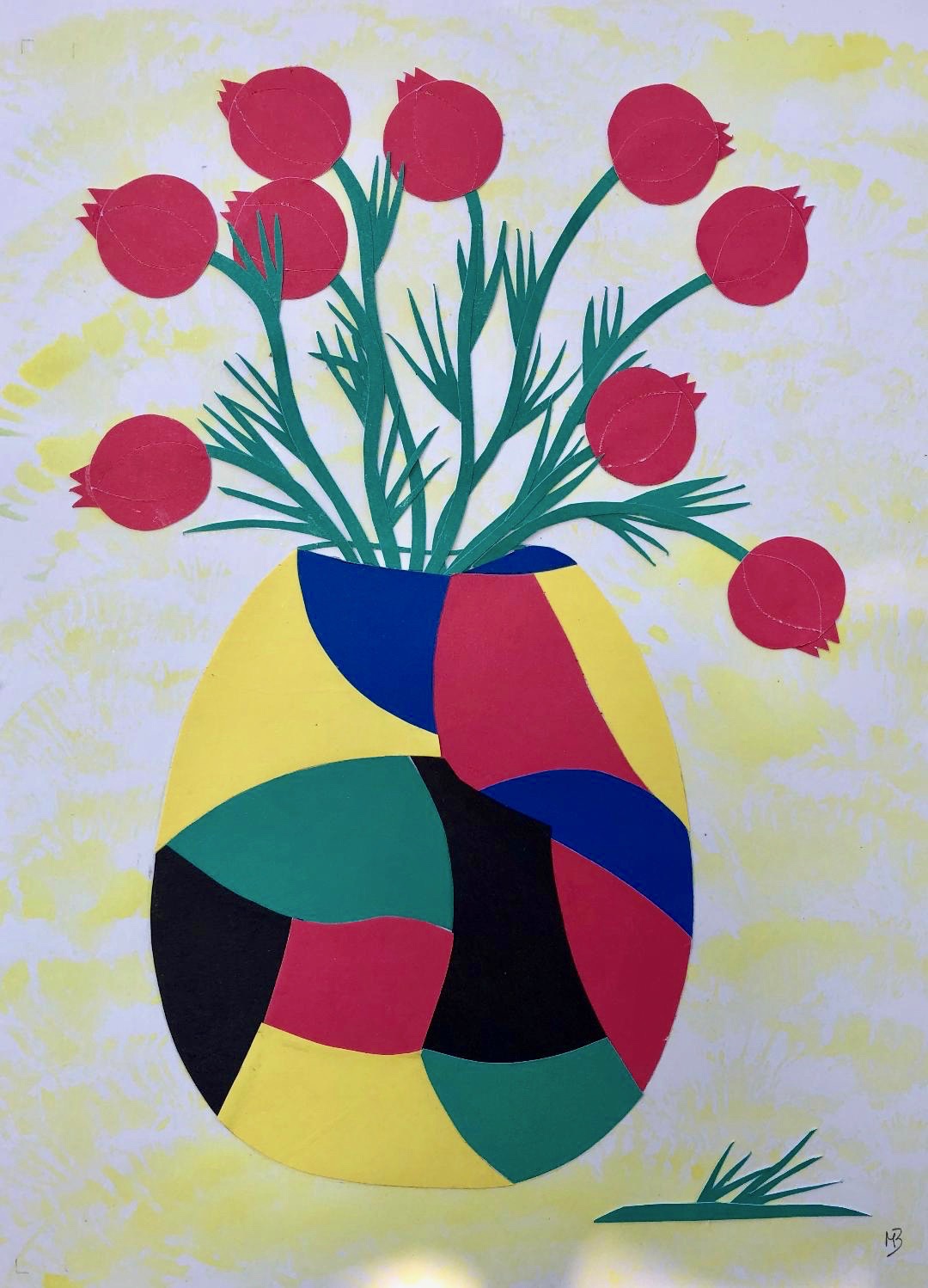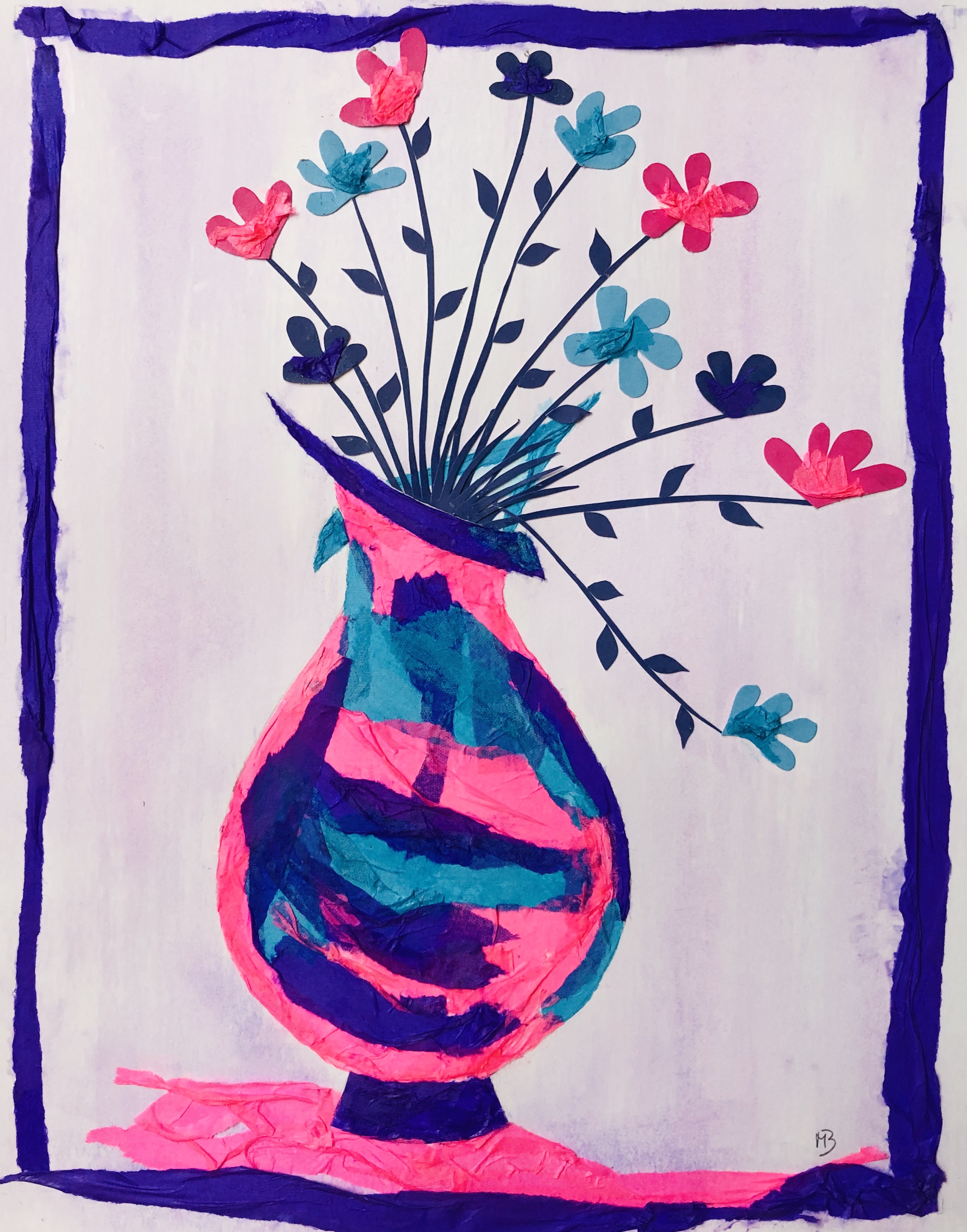 Inspired by my love of nature, the collages I have created transcend a mix of the real and the imaginary to make colorful pictures. I paint and hand print my backgrounds with gouache and watercolors, and use torn and cut pieces of color paper to craft vases, flowers, birds and other elements of nature. The process involved in creating my collages has given me new purpose and has become my passion. This is my collection of collages.