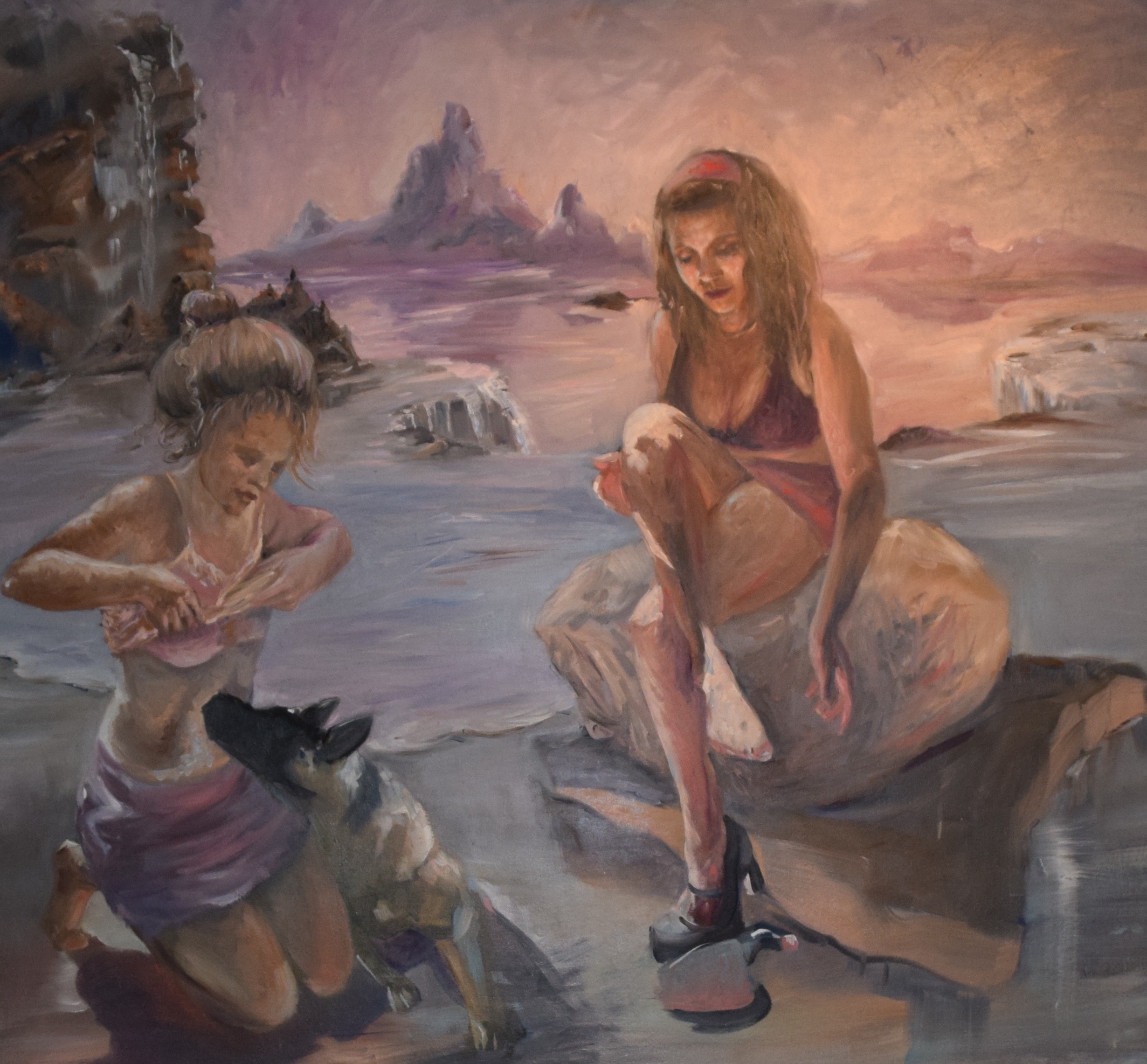 Since the age of three Lara has loved to draw, and later became interested in sculpture and printmaking. At Montclair State University her teacher, Julie Heffernan, showed her how to turn her images into color on a flat surface, and she fell in love with painting. She never looked back. Lara finds painting, especially with oils, the best way to tell her story. She views her paintings as a narrative of life, specifically, her life. Sometimes, when she is not sure what she’s feeling, after she paints for a few hours, she realizes more about what’s going on in her head. She uses multiple photographic images to help make things look realistic in her art. She combines different elements of each one to make her own narrative. She likes to refer to these paintings as “Mash-ups”.